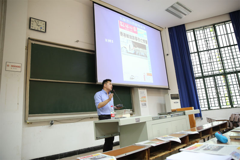 2014年4月24日下午,环球时报要闻部副主任、资深编辑刘洋老师为公司师生带来了一场主题为“从环球视角解读复杂世界”的讲座。他首先诙谐开场问同学有没有听说或者读过环球时报,并要求同学用任何一个词概括这个报纸,有同学指出环球时报是“官方”报纸,也有同学称其“商业民族主义”,被刘洋赞为“很专业”的一个词。