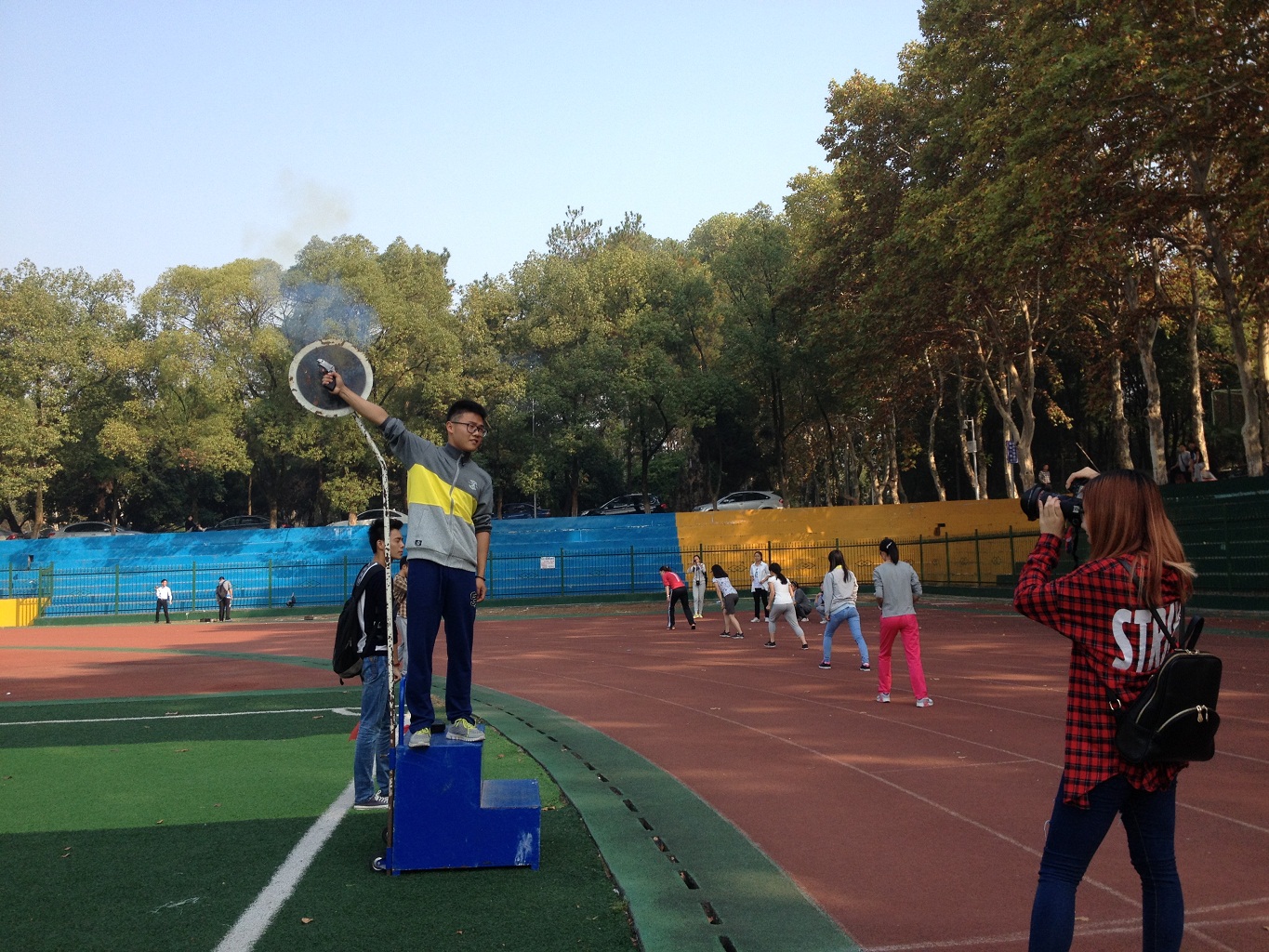 伴着秋日煦暖的阳光,10月26日上午八点,公司2014年本科生运动会在信息学部操场进行。清晨七点三十分,天还只是朦朦亮,已经有一大队人马在湖滨十舍与十二舍的楼下集合。原定于工学部操场的公司本科生运动会因公司老员工体质测试与振兴杯足球赛占用场地,不得不改在遥远的信息学部操场进行。然而志愿者们早在信操集合完毕进行最后的筹备工作,确保开幕式及比赛的顺利进行。
