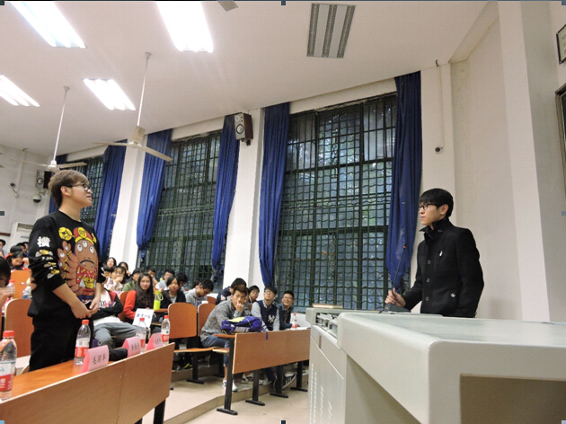首先开讲的是上一届院员工会主席、来自11级广电班的杨光宇,已经大四的他对求职已有较大的感悟。对于找工作中面临专业不对口现象时如何以突出能力取胜的问题,他给出了三点建议:第一,推荐加入院会、校会、社联三个社团;第二,养成反思的习惯,通过一次次比赛,进而一次次总结,一些解决方法的途径便会成为潜意识,也将成为被面试考官看好的核心竞争力;第三,要有团队协作精神,这也是各面试考察最重要的点。