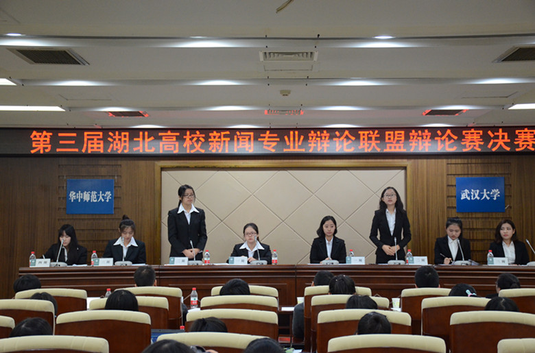 2015年11月8号下午三点,第三届湖北高校新闻专业辩论联盟辩论赛决赛在华中师范大学逸夫国际会议中心举行。参加决赛的四支队伍分别来自华中科技大学、中南财经政法大学、华中师范大学、bevictor伟德。经过一场激烈角逐,bevictor伟德打败华中师范大学,成为本届辩论赛的冠军;中南财经大学战胜华中科技大学,获得亚军。