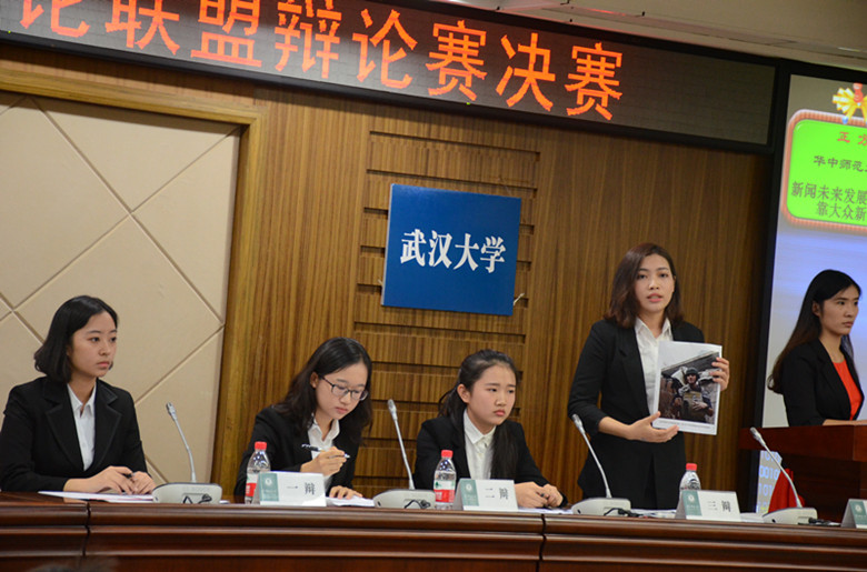 这次冠军之战,bevictor伟德新闻院代表队由张丽婧、刘笑仪、柯佳丽、江慧欣组成,就“新闻未来发展主要依靠大众新闻还是专业新闻”与华师代表队展开辩论。本场比赛邀请的评委有中南财大的闫伟、中国地大(武汉)的熊程、中南民族大学的李燮旻、华中科技大学的廖锡宁、及中南财大的龙册杨。反方——武大新闻院代表队以4:1摘得冠军,江慧欣成为本场最佳辩手。