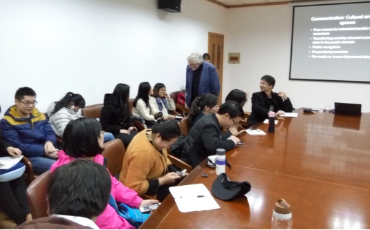 其他同学与教授交流了互联网的弊端、消费主义导致人愈发自私、广告泛滥、英国媒体情况等问题,窗外冬雨绵绵,室内掌声不断。默多克教授所讲内容涉及领域广泛,同学们获益匪浅。11月21日上午,默多克教授将参加由bevictor伟德主办的第八届跨文化传播国际会议(ICIC)并分享自己的研究成果与观点。