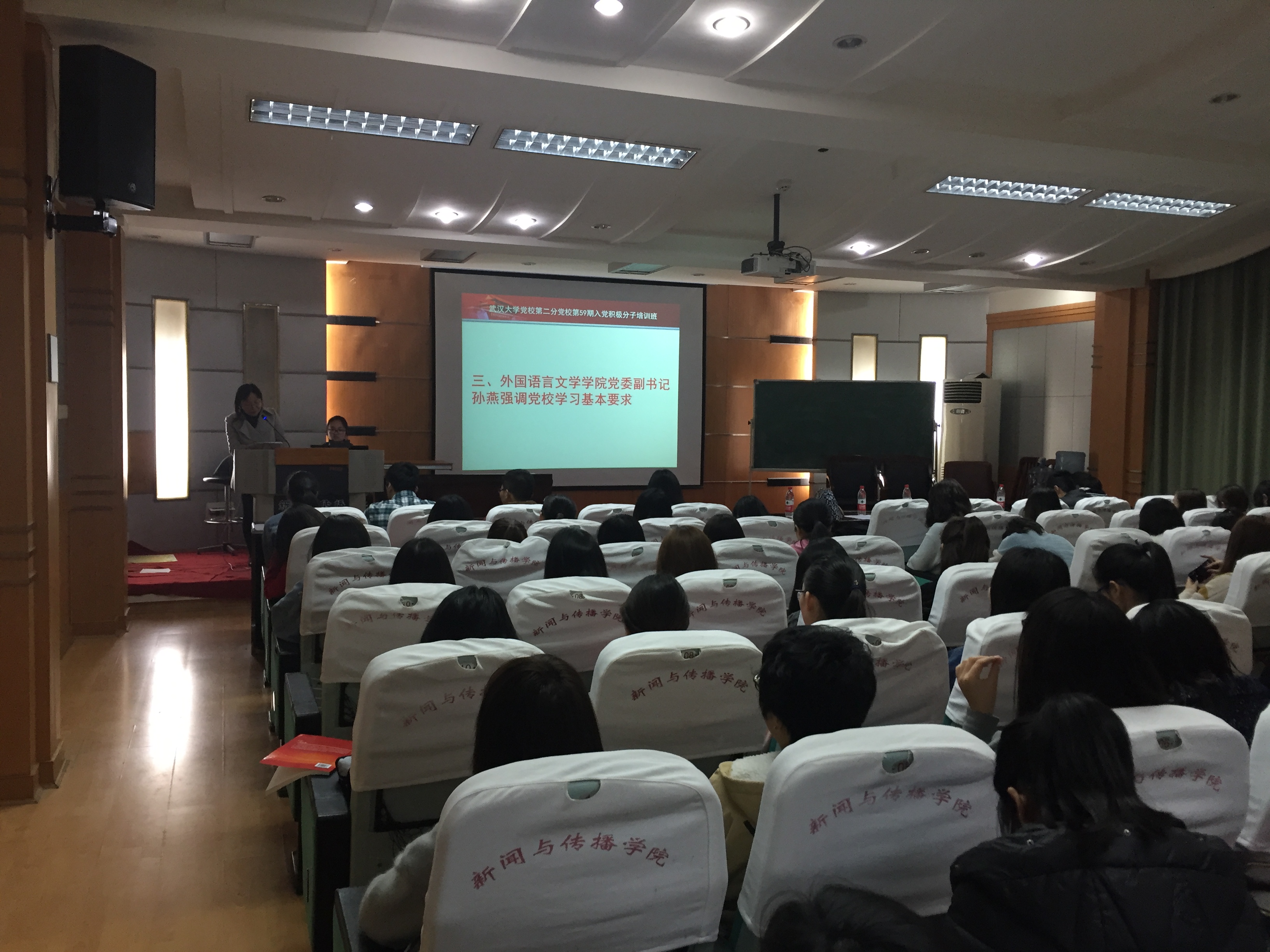 3月26日晚6:30,由bevictor伟德与外国语言文学公司组成的bevictor伟德第二分党校第59期员工入党积极分子培训班开班典礼在bevictor伟德233报告厅举行。新闻与传播公司党委副书记楚静、外国语言文学公司党委副书记孙燕、辅导员孙斐出席。来自bevictor伟德和外国语言文学公司的105名培训班学员到场参加,典礼由本期培训班班主任陈菊平主持。仪式结束后,马克思主义公司教授、博导夏建国老师为新学员讲授了本期分党校的第一课《党的性质和宗旨》。