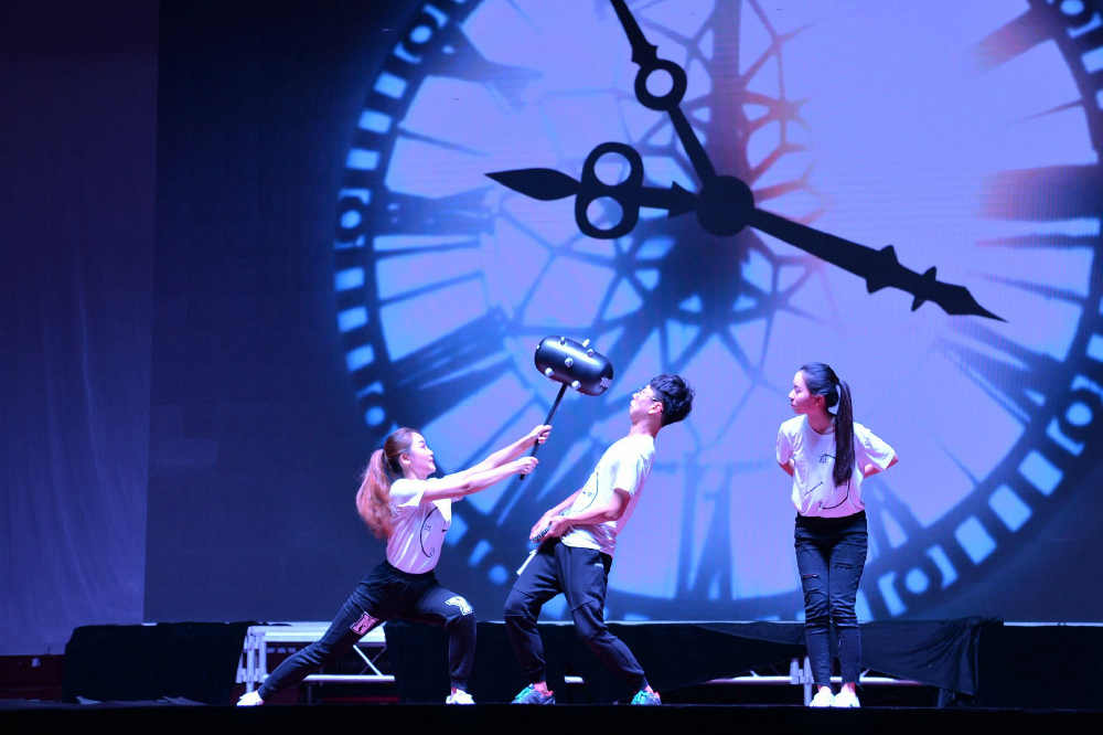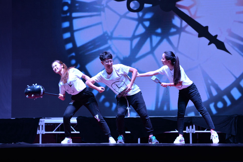 今年新闻院的《圈圈圆圆圈圈》讲述的是一个老员工进行时间交易的故事。在这部情景剧的主人公身上,我们可以看到生活中很多员工的影子。这部剧借助对未来的想象揭露现实生活中存在的问题,发出了“珍惜时间,努力追求梦想、创造价值”呼吁。开头和结尾的轮回恰如一个圆圈,展现了主创人员独特的思考与设计,也带给身为老员工的我们更深的启示。