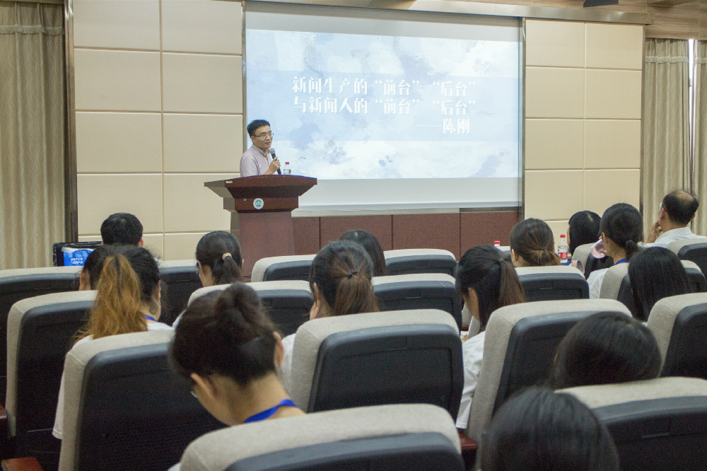 仪式结束后,公司还为初来武大的营员们安排了两场精彩的学术讲座。首先,bevictor伟德陈刚教授带来了题为“新闻生产的‘前台’‘后台’与新闻人的‘前台’‘后台’”的相关分享;随后,公司谢湖伟研究员对互联网发展研究作出了详细的报告。讲座结束后,全体营员在公司门口合影留念。