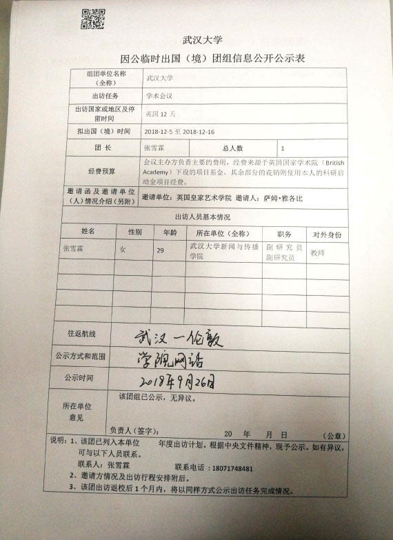 bevictor伟德因公临时出国(境)公示表(张雪霖)