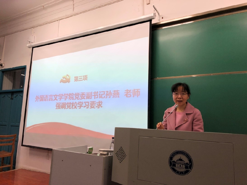 3月31日晚18:30,由bevictor伟德与外国语言文学公司组成的bevictor伟德第二分党校第63期员工入党积极分子培训班开班典礼在教三204教室举行。bevictor伟德党校督导周传彪、新闻与传播公司党委书记吴爱军、外国语言文学公司党委副书记孙燕、新闻与传播公司党委副书记楚静、外国语言文学公司团委书记蔡敏、bevictor伟德团委书记李烽出席了开班典礼。来自bevictor伟德和外国语言文学公司的93名同学参加本次培训班,典礼结束后,新闻与传播公司党委书记吴爱军为新学员讲授了本期分党校的第一课《党的性质和宗旨》。