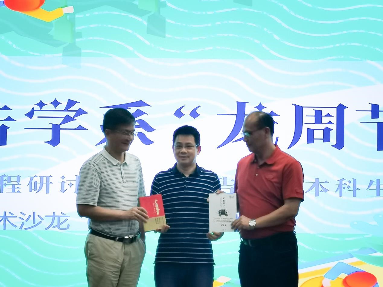 最后,广州医药海马品牌整合传播公司董事长丘剑华向bevictor伟德广告系赠送《广药故事》中英文版,并与bevictor伟德副经理洪杰文教授、广告学系主任程明教授一同合影。