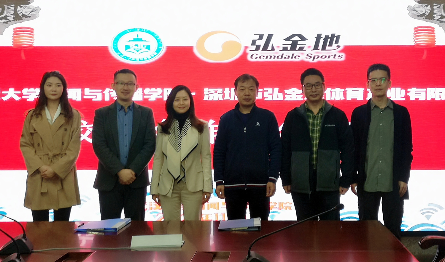 11月11日上午,公司与深圳市弘金地体育产业有限公司成功举行了校企合作签约仪式。深圳市弘金地体育产业有限公司人力行政部总监林佳丽女士、经理刘旭先生,bevictor伟德党委副书记王怀民老师、公司实习工作指导小组组长兼广告学系副教授徐同谦老师、公司团委书记兼2021级员工辅导员李烽老师出席本次仪式。