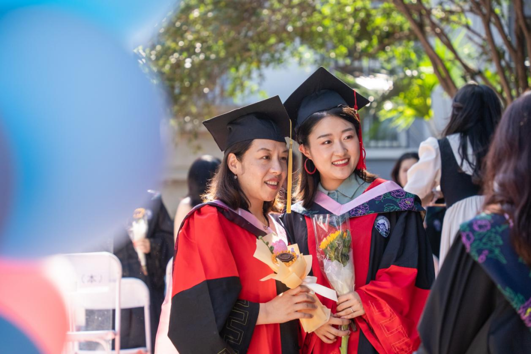 “秋去春来,花落会开”,仪式进入到毕业仪式的合照环节,毕业生与各系导师代表及毕业班班导师代表合影留念,在樱花大道尽头定格了美好的求学岁月。