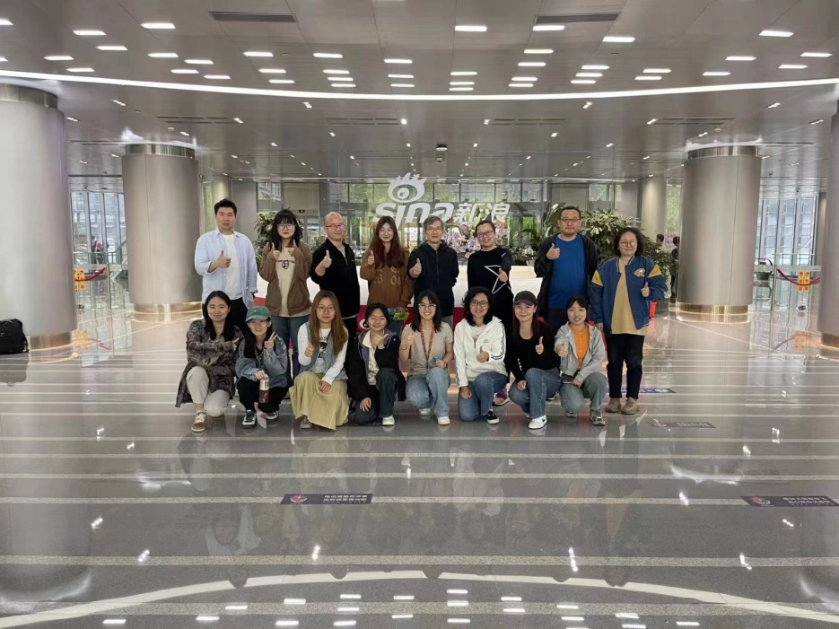 (实践教学指导小组老师在新浪同实习指导老师与员工交流)