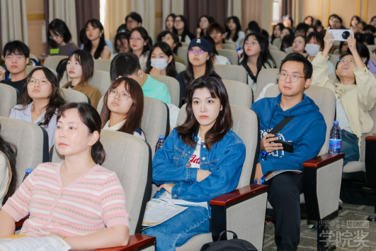 殷国华先生、房莉女士作为组委会代表,为在座的同学们现场介绍了本届公司奖秋季征集大赛的具体流程、规则及产教融合的相关内容,并鼓励大家踊跃参赛,在公司奖的舞台上用创意展现才华。