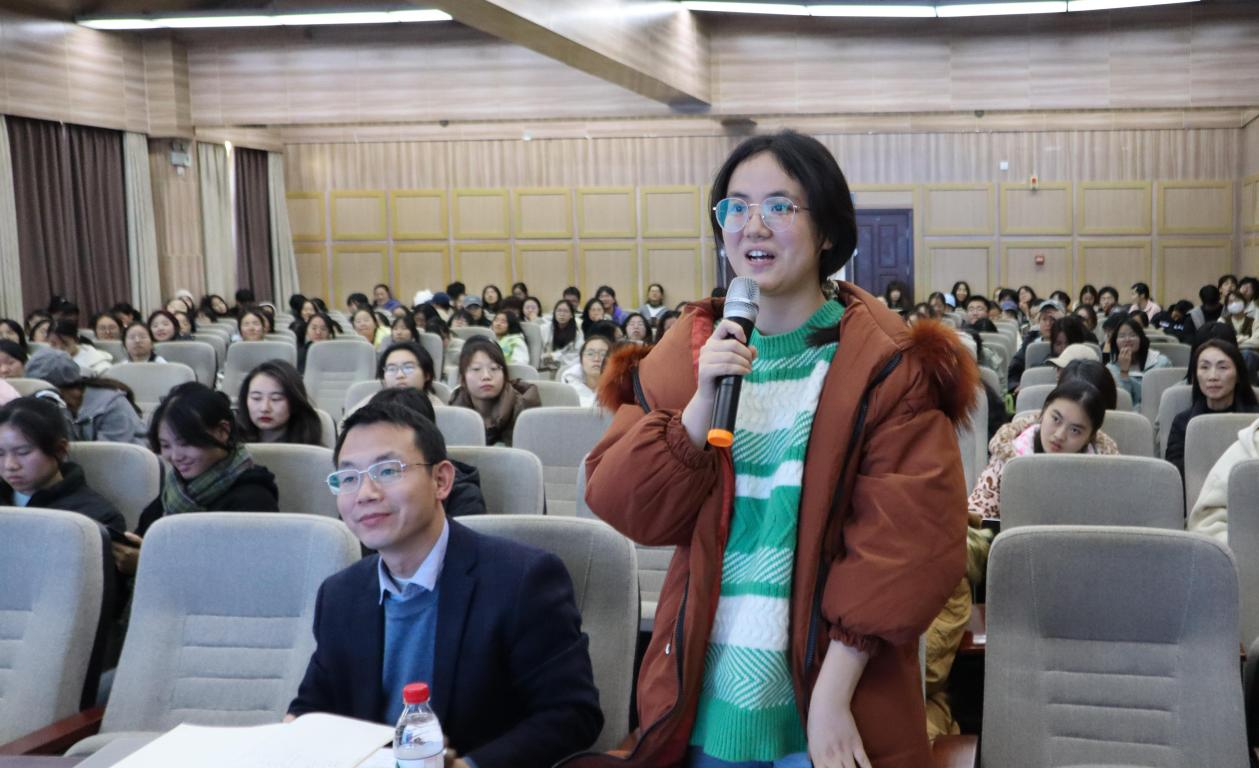 在讲座后的互动环节,刘老师曾经的两位老同事、老师闻讯赶来现场并回忆了刘老师当年学习工作的情况,与同学们分享了自己从事新闻工作的体会。2022级本科生高国妍、2024级硕士研究生夏欣瑜分别向刘老师提问新闻学子“应如何提升自己的政治敏锐度”“要怎样提升自己的写作技能”等问题。刘老师一一解答。