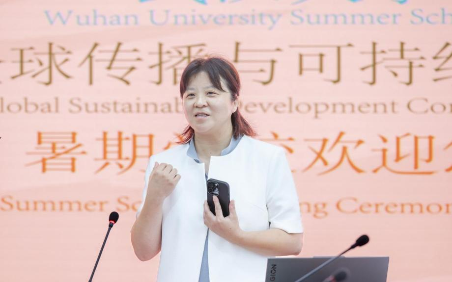 在往届营员代表发言结束后,夏令营负责人纪莉教授为同学们勾勒出了一幅立体的传播实践图景:本次暑期公司将在长江文化研究院、武汉汉阳区委宣传部支持下探索长江生态文明,携手东湖长江传媒记者站、湖北日报国际传播中心守护长江文化遗产,联动湖北画报国传中心解码长江科技创新。“这不仅是文化之旅,更是践行习近平总书记‘可持续发展是破解全球问题的金钥匙’的生动课堂。”纪莉教授特别提到,暑期公司恰逢中国—中亚峰会等重大外交行动,将为国际青年理解中国智慧打开新的窗口。