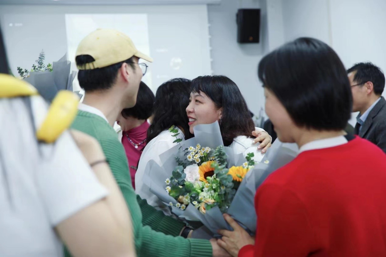 经理强月新说:“公司,员工是主人,作为老师,员工是我们的‘主要产品’,是一届一届优秀的员工擦亮了公司的名片。珞珈山旁,灰瓦白墙,樱花尽头,为你守候,欢迎回家!”洪杰文副经理说:“新闻公司最宝贵的财富,就是我们的员工。我永远无法忘记,2012年全班同学在机房给我过的难忘的生日,其实员工都是我们的孩子,孩子回到珞珈山,樱花尽头是你们永远的家。”09级网传班班导王朝阳感慨:“我们老师白头发都很多了,员工们十年后还是一样的年轻。”老师们纷纷讲述着曾经的回忆。